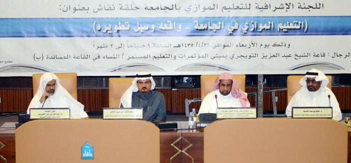 رعى معالي مدير الجامعة الأستاذ الدكتور سليمان بن عبدالله أبا الخيل مساء أمس الأول حلقة نقاش بعنوان: (التعليم الموازي في الجامعة واقعه وسبل تطويره) وذلك في قاعة الشيخ عبدالعزيز التويجري بمبنى المؤتمرات.