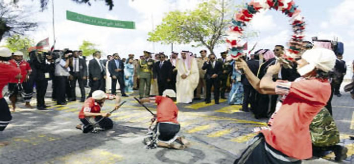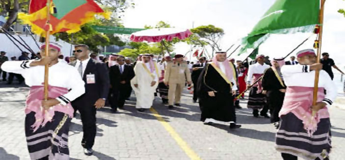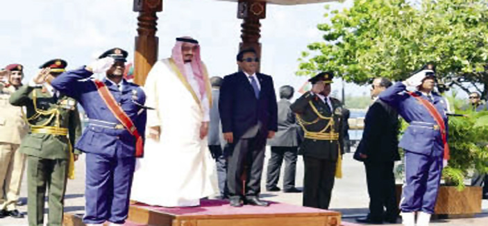 وفور وصول سموه أطلقت المدفعية طلقات ترحيبية.. بعد ذلك عزف السلامان الملكي السعودي والجمهوري المالديفي. ثم استعرض سموه حرس الشرف. بعد ذلك توجه سموه إلى مقر رئاسة الجمهورية وسط احتفالات ورقصات شعبية ترحيباً بمقدم سموه.
