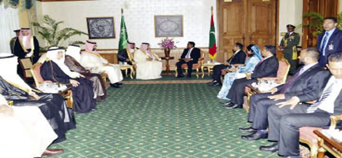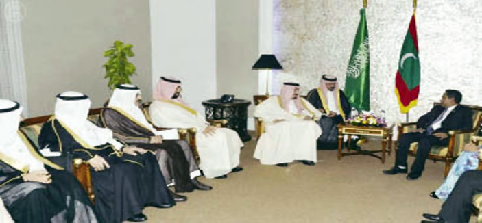 بحث صاحب السمو الملكي الأمير سلمان بن عبد العزيز آل سعود ولي العهد نائب رئيس مجلس الوزراء وزير الدفاع وفخامة الرئيس عبد الله يمين عبد القيوم رئيس جمهورية المالديف آخر المستجدات على الساحتين الإقليمية والدولية. وتناول الاجتماع المنعقد برئاسة سمو ولي العهد والرئيس المالديفي أمس أوجه التعاون بين البلدين الشقيقين وسبل دعمها وتطويرها. وقد سجل سموه كلمة في سجل التشريفات أعرب فيها عن شكره للحفاوة البالغة التي قوبل بها والوفد المرافق داعياً الله لجمهورية المالديف التوفيق والسداد وللشعب المالديفي الشقيق كل تقدم. وقد شرف سمو ولي العهد حفل الغداء الذي أقامه تكريماً لسموه والوفد المرافق فخامة الرئيس المالديفي عبد الله يمين عبد القيوم.