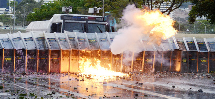 - تواصل الاشتباكات بين المتظاهرين وعناصر من الشرطة في كركاس محتجين على انتهاكات حقوق الإنسان من قبل الشرطة ضد المتظاهرين المعادين للحكومة..(أ ف ب)
