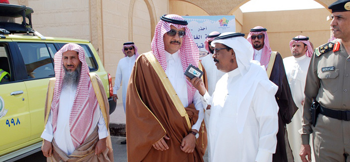 وفي نهاية الحفل قام سمو المحافظ ومدير الدفاع المدني بتكريم الجهات الحكومية والأهلية المشاركة في هذه المناسبة، ثم افتتح سمو المحافظ المعرض المقام بهذه المناسبة، بعد ذلك تفقد سموه آليات الدفاع المدني، ثم أعطى الإذن بانطلاقة مسيرة الدفاع المدني التوعوية.