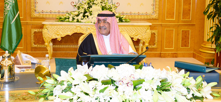 رأس صاحب السمو الملكي الأمير مقرن بن عبدالعزيز آل سعود , النائب الثاني لرئيس مجلس الوزراء المستشار والمبعوث الخاص لخادم الحرمين الشريفين - حفظه الله - الجلسة التي عقدها مجلس الوزراء ، بعد ظهر امس الاثنين، في قصر اليمامة بمدينة الرياض.