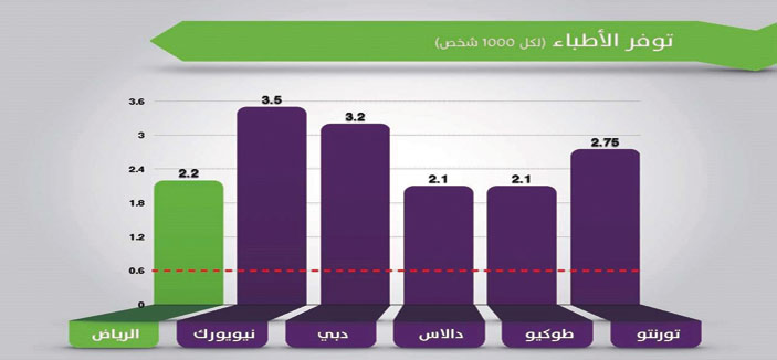 2.2 طبيب لكل 1000 نسمة في مدينة الرياض.