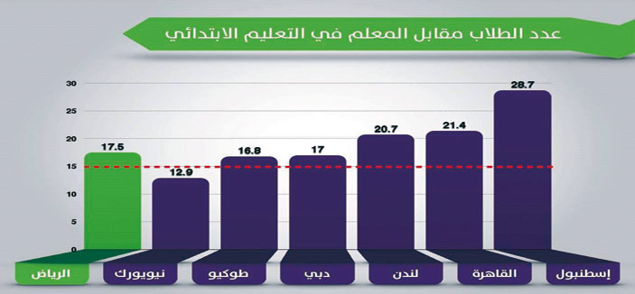 17.5 طالب لكل معلم في المرحلة الابتدائية.