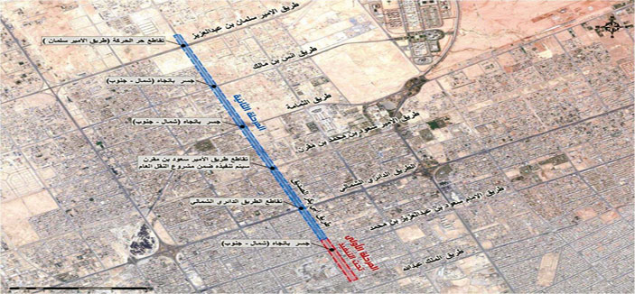 · تنفيذ جسرين للسيارات للحركة باتجاه (شمال – جنوب) عند تقاطع الطريق مع طريق الثمامة, وطريق أنس بن مالك.