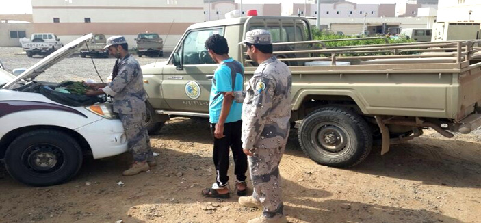 تمكنت دوريات حرس الحدود بقطاع الطوال من القبض على سيارة هايلكس وسائقها أثناء الاشتباه بها بعد أن تم إيقافها للتفتيش وقد وجد بداخلها 15 كجم قات مخبأة بجانب المكينة.