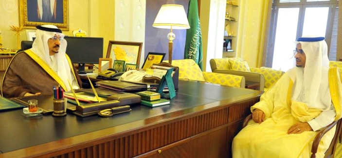 هذا وقد رحب بهما سموه وتمنى للمهندس الضلعان كل التوفيق والنجاح في عمله الجديد، وقدم الشكر للمهندس العبداللطيف بمناسبة انتهاء فترة عمله بالمنطقة متمنياً له التوفيق والنجاح.