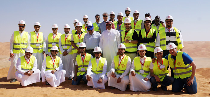وقد اطلع الوفد الزائر على مجريات سير العمل بالمشروع وآلية تنفيذه والتقنيات والآليات المستخدمة في ظروف جغرافية صعبة يمر بها مسار العمل في هذا المشروع الحيوي المهم، وقد حظي الطلاب بشرح في قاعة الاجتماعات تمثِّل في عرض إلكتروني للمشروع من بدايته حتَّى الوصول إلى هذه المرحلة المتقدِّمة من العمل، هذا وقد قام الوفد بزيارة ميدانية على أرض الواقع لعدد من الأماكن المهمة واستمعوا لتفاصيل وشروحات ومرئيات والنظريات التي اعتمد عليها من قبل المهندس فايز صباحين مدير المشروع، ولوحظ استخدام الطلبة لأجندة الملاحظات أو بعض وسائل الاتِّصال الحديثة لتسجيل ملاحظاتهم واجابات مهندس المشروع عليها، كما أقيم حفل في صحراء الربع الخالي تخلله كلمات عدَّة منها كلمة سعادة المهندس ماجد السبيعي الذي قال فيها: إن زيارة معالي وزير النقل السابقة لهذا المشروع أثمرت في تنفيذ هذه الفكرة الرائدة، حيث تَمَّ التواصل من قبل الوزارة مع وزارة التَّعليم العالي مشكورة للبدء في هذه الجولة وانتقاء الطلبة الذين هم على وشك التخرّج أو المعيدين في الجامعة لتؤتي هذه الزيارة نتائجها الإيجابيَّة على الجميع. وتحدث المهندس عن صعوبة العمل في مثل هذه التضاريس، مبينًا أن وزارة النقل تحرص على راحة المواطنين وهي تعمل على تنفيذ العديد من المشروعات الحيويَّة والمهمة، وشكر شركة الروسان للمقاولات على استقبالهم لهذا الوفد وتقديم الخبرة لكوكبة من المهندسين الشباب، كما ألقى الرئيس التنفيذي لشركة الروسان للمقاولات كلمة رحب فيها بوفد وزارة النقل ووزارة التَّعليم العالي، وقال: إن هذا المشروع هو ثمرة توجيهات معالي وزير النقل وهو بالتالي تنفيذ لخطط التنمية في بلدنا العزيز بدعم من حكومة خادم الحرمين الشريفين وسمو ولي عهده الأمين وكرر ترحيبه بالجميع، متمنيًّا أن تكون هذه الزيارة أعطت انطباعًا عن العمل وحجمه وما بذل فيه. كما قدم شكره لشركة أرامكو السعوديَّة ولشركة آراء للإنتاج وشركة خطيب وعلمي، كما تفضَّل المهندس طارق القبيسي المعيد في جامعة الحدود الشماليَّة بإلقاء كلمة نيابة عن زملائه قال فيها: إن انطباعنا الأولي عن الزيارة قبل البدء كان عاديًا ولكن عندما دخلنا منطقة الربع الخالي وشاهدنا الكميات الهائلة من الرمال المتحركة وارتفاعاتها الهائلة أدركنا أن تنفيذ هذا المشروع من قبل الشركة المنفذة وقبل ذلك من قبل وزارة النقل كان بمثابة التَّحدِّيي مواجهة الصعوبات واستفدنا بالقدر الذي يعد أضعافًا لما توقعناه.