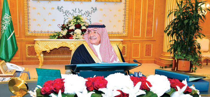 رأس صاحب السمو الملكي الأمير مقرن بن عبد العزيز آل سعود، النائب الثاني لرئيس مجلس الوزراء المستشار والمبعوث الخاص لخادم الحرمين الشريفين -حفظه الله- الجلسة التي عقدها مجلس الوزراء، بعد ظهر أمس الاثنين، في قصر اليمامة بمدينة الرياض.