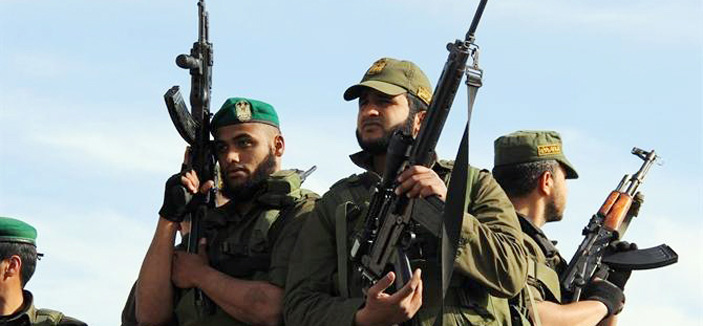 - صورة لرجال من قوات الأمن الوطني التابعة لحكومة حماس خلال مسير عسكري قاموا به انطلق من مفترق الشهداء شرق غزة ... الجزيرة