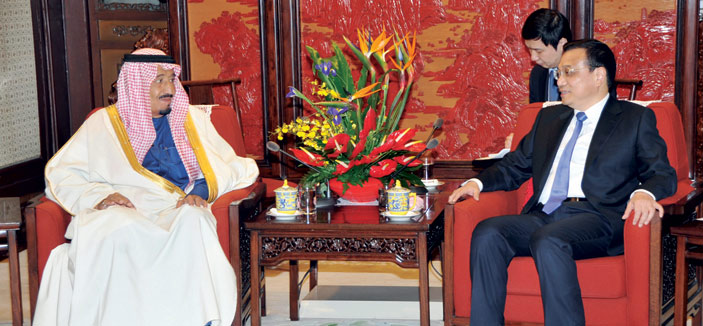 اجتمع صاحب السمو الملكي الأمير سلمان بن عبدالعزيز آل سعود، ولي العهد نائب رئيس مجلس الوزراء وزير الدفاع، أمس مع دولة رئيس الوزراء الصيني لي كيغ لانغ، وذلك في قصر رئاسة مجلس الدولة في العاصمة الصينية بكين.