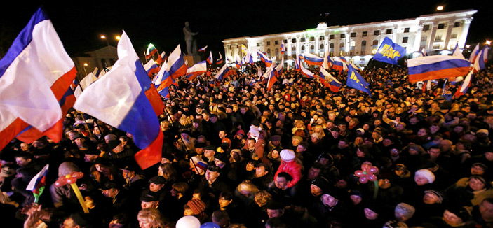 وسط أسوأ أزمة بين الشرق والغرب منذ الحرب الباردة تتمثل في معارضة أمريكية مباشرة، صوّت سكان شبه جزيرة القرم الأوكرانية أمس الأحد بأغلبية ساحقة لصالح الانضمام إلى روسيا، مع تزايد التوتر في شرق أوكرانيا، في حين رفضت الولايات المتحدة بشدة أمس الأحد الاستفتاء الذي وصفت به التحركات الروسية في الأزمة بأنها خطيرة ومزعزعة للاستقرار، في حين وصفت بريطانيا الاستفتاء الذي جرى في القرم الأوكرانية بأنه استهزاء بالديموقراطية رافضة الاعتراف بالنتيجة .