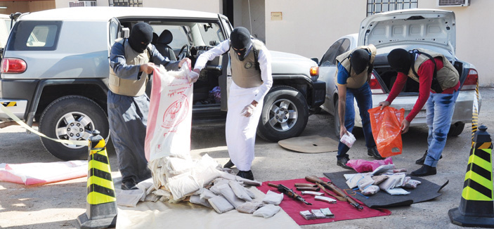 فقد تمكنت الجهات الأمنية المختصة بتوفيق الله تعالى خلال أشهر (محرم, صفر, ربيع الأول, ربيع الآخر) من العام الجاري 1435هـ من القبض على (849) ثمانمائة وتسعة وأربعين متهماً منهم (278) سعودياً بالإضافة إلى (571) متهماً من (31) جنسية مختلفة لتورطهم في جرائم تهريب ونقل واستقبال وترويج مخدرات تقدر قيمتها السوقية بـ(2) مليارين و(93) ثلاثة وتسعين مليوناً و(874) ثمانمائة وأربعة وسبعين ألفاً و(231) مائتين وواحد وثلاثين ريالاً.