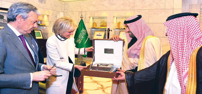 حضر الاستقبال سفير خادم الحرمين الشريفين لدى مملكة بلجيكا عبدالرحمن بن سليمان الأحمد والسفير البلجيكي لدى المملكة مارك فينك.