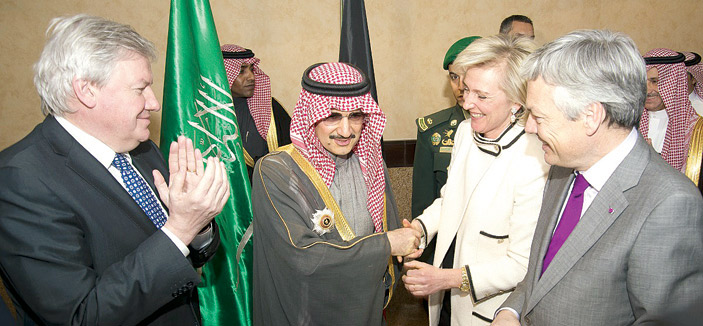 وخلال الحفل التكريمي ألقى سمو الأمير الوليد بن طلال كلمة شَكَر فيها جلالة ملك بلجيكا، الملك فيليب لتقديره وتشريفه بالوسام، وقد رحب سموه بالوفد البلجيكي وعلى رأسهم سمو الأميرة أستريد. حيث نوّه سموه بالعلاقات الثنائية الاقتصادية بين البلدين ومنها التبادل التجاري الذي ارتفعت فيها صادرات بلجيكا إلى المملكة العربية السعودية بنسبة 50% منذ آخر زيارة لوفد الأعمال البلجيكي في عام 2009م. وأشار سموه إلى التعاون القائم بين مؤسسة الوليد بن طلال الخيرية والمنظمة الأوروبية لأبحاث وعلاج السرطان.