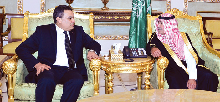 عقد صاحب السمو الملكي الأمير مقرن بن عبدالعزيز آل سعود, النائب الثاني لرئيس مجلس الوزراء المستشار والمبعوث الخاص لخادم الحرمين الشريفين -حفظه الله- في قصر المؤتمرات بالرياض، أمس، اجتماعا مع دولة رئيس الوزراء التونسي مهدي جمعة. وفي بداية الاجتماع، رحب سمو النائب الثاني بدولة رئيس وزراء تونس، متمنيا له طيب الإقامة.