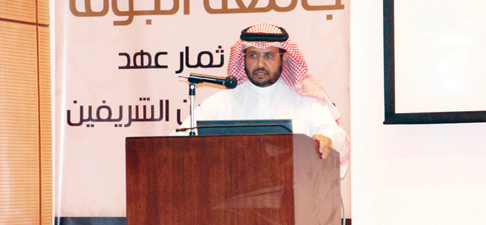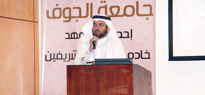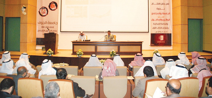 وقع صاحب السمو الملكي الأمير فهد بن بدر بن عبدالعزيز آل سعود -حفظه الله- أمير منطقة الجوف مساء الأحد 15-5-1435 هـ، كرسي سموه للتنمية الإدارية بالمنطقة، في بهو كلية العلوم بالمدينة الجامعية وفور وصول سموّه تفضّل بقص شريط معرض البحوث المصاحب للملتقى السنوي الثاني للبحث العلمي والنشر، التي بلغت 42 بحثاً جارٍ تنفيذها بواسطة فرق بحثية متخصصة من كليات العلوم والعلوم الطبية التطبيقية والطب وطب الأسنان والعلوم الإدارية والإنسانية والتربية والهندسة، مطّلعاً سموه خلال ذلك على ما احتواه المعرض من ملصقات لأبحاث عن الزيتون والبيئة والطب واللغة العربية واللغة الإنجليزية والدراسات الإسلامية.