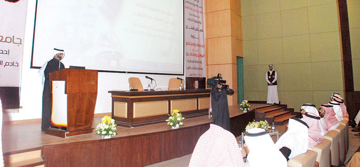 وأكد معاليه خلال الكلمة على أهمية ما يتضمنه البحث العلمي، من صقلٍ لقدرات الطلبة البحثية، مشيراً إلى أن كل شيء قد تم تهيئته لمشاركة الطالب والطالبة في المجال البحثي، كونهم وقود هذا المجال، ولا يمكن العمل بمعزلٍ عنهم، داعياً أعضاء هيئة التدريس إلى ضرورة دمج الطالب في هذه العملية، من خلال استخدام كافة الوسائل اللازمة لذلك، مستعرضاً وسيلة تشكيل مجموعات بحثية كبيرة، تعمل إلى جانبها مجموعات بحثية طلابية، تستلهم تجربة أعضاء الهيئة التدريسية، وتتفاعل معها.