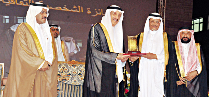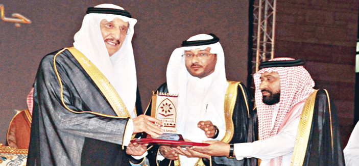بعد ذلك كرم سمو أمير منطقة جازان الفائزين بالجائزة ، فيما قدم هدية لوكيل وزارة الثقافة والإعلام للشئون الثقافية .