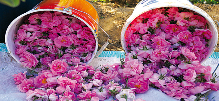 وقام عدد كبير من ملاك وأصحاب المزارع بالبدء في القطفة الأولى التي تعد مميزة لما تتمتع به من جمال أخاذ وعبير فواح.