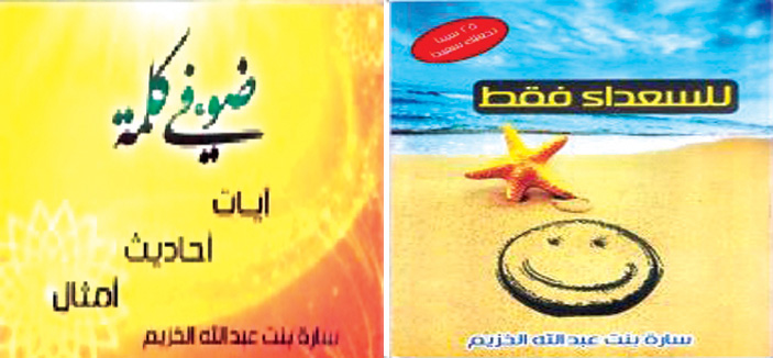 هي إصدارات ثلاثة (محافظة الخرج التاريخ والجغرافيا)، (ضوء في كلمة)، (سعداء فقط)، كان لي معها جميعاً سياحة فكر ومنطلقات تأمل حافزة للقاء المؤلفة سارة بنت عبدالله الخزيم، صاحبة (أحدية سارة الخزيم الثقافية) في محافظة الخرج.