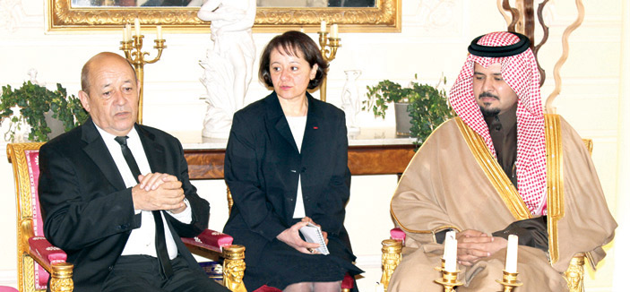 حضر الاستقبال سفير خادم الحرمين الشريفين لدى فرنسا محمد بن إسماعيل آل الشيخ . كما زار سمو نائب وزير الدفاع أمس وزارة الدفاع الفرنسية، وعند وصوله سموه لمقر الوزارة كان في استقباله معالي وزير الدفاع الفرنسي جون ايف لوديريان، وكبار المسؤولين في الوزارة، حيث عزف السلام الملكي السعودي والسلام الوطني الفرنسي، ثم استعرض سموه حرس الشرف.