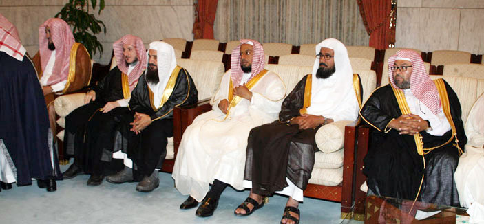 استقبل صاحب السمو الملكي الأمير تركي بن عبد الله بن عبد العزيز أمير منطقة الرياض بالنيابة في قصر الحكم أمس أصحاب الفضيلة العلماء وأصحاب المعالي وعددًا من المسؤولين وجمعًا من المواطنين. في بداية الاستقبال رحب سموه بالجميع، منوهًا بالتطوّر الهائل الذي تعيشه المملكة في ظلِّ توجيهات واهتمام خادم الحرمين الشريفين وسمو ولي عهده الأمين وسمو النائب الثاني. وأبرز سموه اهتمام خادم الحرمين الشريفين بالقضاء ودعمه وتوفير كل متطلبات مرافق القضاء. وقال سموه: لقد لمست معالم هذا الإنجاز والتطوّر للقضاء والطريقة الموفقة التي يسير عليها هذا المرفق المهم. فالمواطنون والمسؤولون كلّّهم سعداء بهذا الاهتمام والمسيرة الموفقة لمرفق القضاء في جميع المجالات إلكترونيًا وقضائيًّا وهذا بفضل من الله سبحانه وتعالى، ثمَّ تحكيم كتاب الله وسنَّة رسوله صلَّى الله عليه وسلَّم. وهذا دستورنا الذي ننهجه ونسير عليه والحمد لله ونفتخر بشرعنا الحكيم ودستورنا العظيم. وكرَّر سموه في ختام كلمته شكره وامتنانه لحضور أصحاب الفضيلة المشائخ في هذا اليوم وهذا اللقاء المبارك.