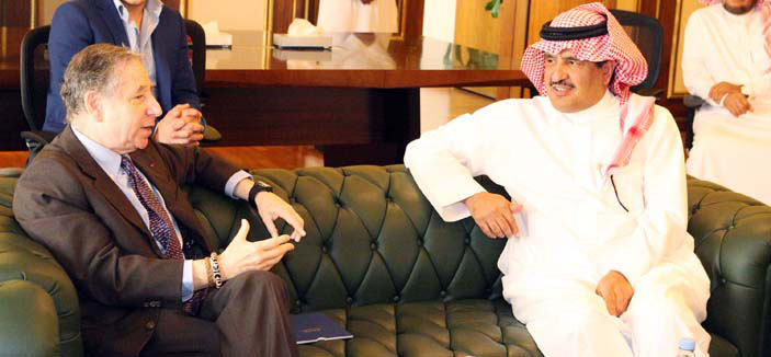 وذلك بمناسبة زيارة رئيس الاتحاد الدولي للسيارات نهائيات رالي حائل 2014م والتي تختتم اليوم الخميس، وقد تم خلال اللقاء استعراض المواضيع التي تهم رياضة السيارات على المستويين المحلي والدولي.