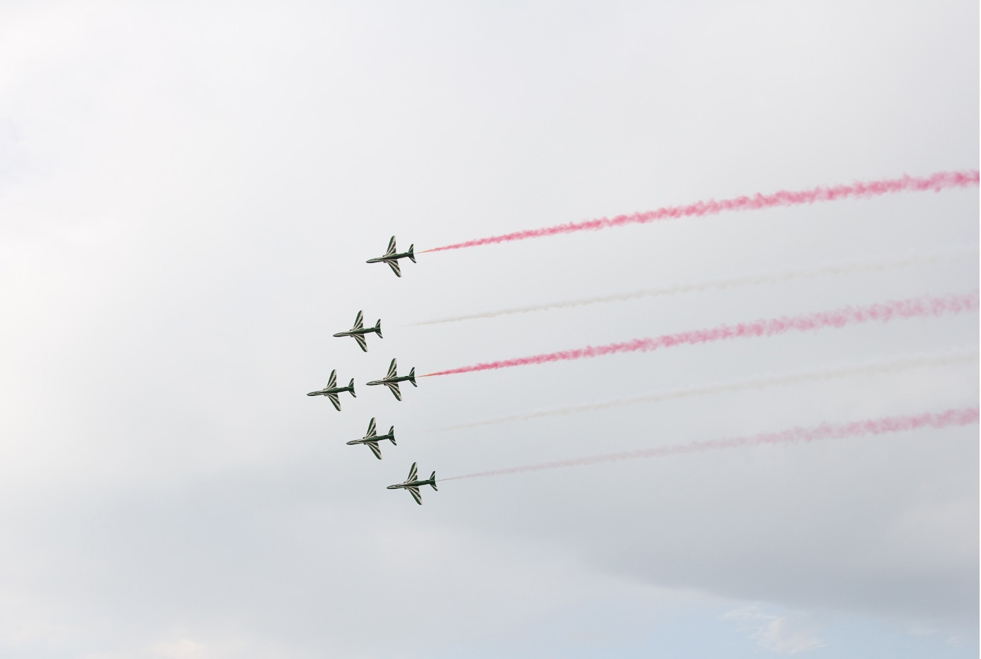 واصل فريق الصقور السعودية لليوم الثاني على التوالي استعراضاته على شواطئ الخبر وسط حضور كثيف من الزوار، وذلك ضمن فعاليات المهرجان الوطني السادس للعلوم والتقنية والمقام حالياً في مركز الأمير سلطان بن عبدالعزيز للعلوم والتقنية «سايتك» بالخبر، حيث وفر مركز «سايتك» في الساحات الخارجية أماكن للجلوس تتسع لأكثر من ألفي شخص، وذلك لتوفير أكبر قدر من وسائل الراحة للزوار لمشاهدة الوصلات الاستعراضية للصقور السعودية، كما وفرت إدارة المهرجان مكبرات الصوت يقوم من خلالها الضباط التابعين للفريق بشرح مفصل عن الحركات الاستعراضية وكيفية القيام بها، إضافة إلى إعطاء الزوار نبذة عن الفريق وعدد المشاركات المحلية والعالمية والجوائز الحاصلين عليها بهدف التعريف بإمكاناتها وكفاءتها ومقدرة الطيار الفني السعودي على تطويع الآلة والتقنيات المتقدمة وإبراز الوجه الحضاري للقوات الجوية. وكان وفد من مركز الأمير سلطان بن عبدالعزيز للعلوم والتقنية سايتك زار أمس فريق الصقور السعودية في قاعدة الملك عبدالعزيز الجوية بالظهران يتقدمهم مدير عام مركز سايتك الدكتور حبيب أبوالحمائل، أثناء استعدادهم لتجهيزات انطلاق عروضهم الجوية، حيث كان في استقبالهم قائد سرب الصقور السعودية الذي شرح نوع الطائرات المستخدمة في العروض واللباس المستخدم في عملية الطيران وجوانب السلامة المطلوبة وعمليات الإقلاع وأنواع العروض الجوية للفريق.