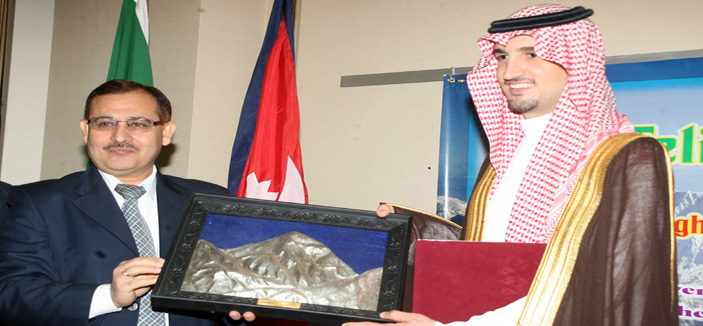 كرم سفير جمهورية النيبال لدى المملكة راج باندي مساء الأربعاء الماضي صاحب السمو الأمير بندر بن خالد بن فهد -رئيس برنامج تطوير تسلق الجبال في الهيئة العامة للسياحة والآثار- لتحقيقه إنجازاً قياسياً بصعوده قمة جبل إيفرست أعلى جبل في العالم البالغ ارتفاعه أكثر من 8000م عن سطح البحر.