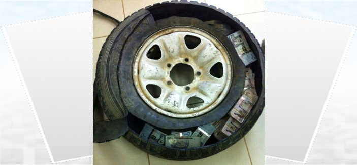 وأكد المتحدث الرسمي لشرطة منطقة جازان بالإنابة الرائد عبدالرحمن سعد الزاهراني أن شرطة الطوال تسلمت شخصا يمني الجنسية برفقة عائلته حاول تهريب خمسة مليون وأربعة آلاف ريال العملة سعودية في إطارات السيارة ولازال التحقيق معه لمعرفة مصدر هذه المبالغ المالية.