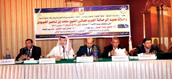 بالتعاون بين منتدى ثلوثية المشوح ومركز الدراسات الشرقية بجامعة القاهرة أقيم الأحد الماضي احتفال علمي تمت فيه قراءة أعمال الشيخ العلامة محمد العبودي وإنجازاته وسيتم نشر الأبحاث والأوراق في كتاب مستقل وتنشر «الثقافية» مجتزءات منها.