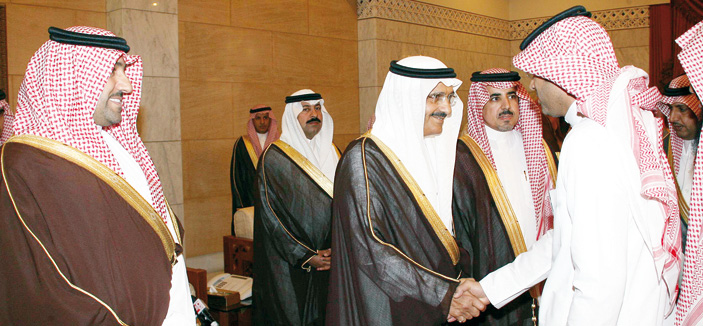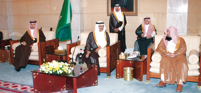 استقبل صاحب السمو الملكي الأمير خالد بن بندر بن عبد العزيز، أمير منطقة الرياض، وصاحب السمو الملكي الأمير تركي بن عبد الله بن عبد العزيز، نائب أمير منطقة الرياض في قصر الحكم أمس أصحاب الفضيلة العلماء، وأصحاب المعالي، وعدداً من المسؤولين وجمعاً من المواطنين.
