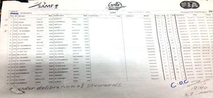 وتحدث المتسابق المستبعد من المركز الثاني خلف الجوعان والمتوج قبل فترة وجيزة بالإمارات بحصوله المركز الأول وقال: شاركت بسيارتي في الإمارات والفاحصين اجانب وجميع تجهيزات سيارتي صحيحه ولكن نتفاجأ بتشويه السمعة في التلاعب.