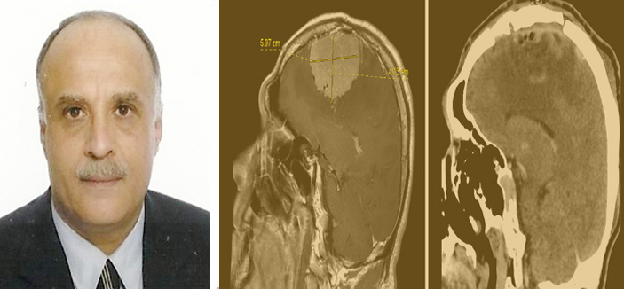 وقال إن المريض وصل المستشفى في حالة إعياء شديد وتم إخضاعه لأشعة التصوير المقطعي (C.T. Scan) والرنين المغناطيسي (M.R.I) و (M.R.V) والتحاليل المخبرية ، حيث أوضحت النتائج وجود ورم كبير بالمخ يعرف باسم (Menigioma) وهو بحجم البرتقالة ويبلغ حجمه (5.8 × 4 × 5 ) سم في الجزء العلوي الأمامي للدماغ ، مضيفاً بأن هذا الورم قد تسبب في حدوث ضغط شديد على المخ مما تسبب بحدوث نوع من الصداع المزمن.