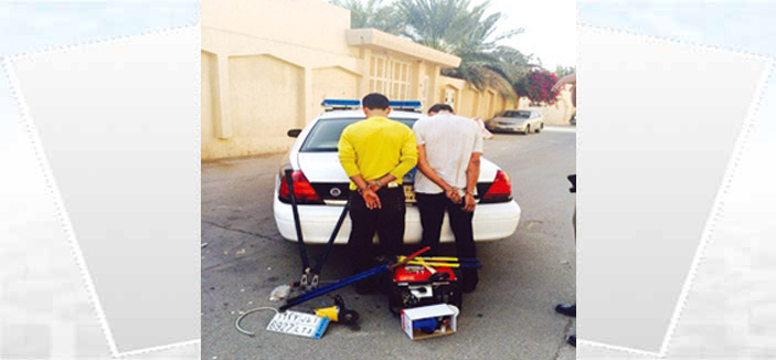 وفي التفاصيل أن إحدى دوريات الأمن وأثناء قيامها بعملها في حي الربوة شاهدت شخصين سعوديين وهما يشرعان بالسرقة من أحد محلات العود والعطورات الشرقية وعندما لاحظا وجود الدورية لاذا بالفرار فتمت متابعتهما وسد كافة المداخل والمخارج أمامهما والقبض عليهما وعند تفتيش السيارة التي كانا يستقلانها وجد أن اللوحات التي عليها مسروقة لا تخصها وعثر بداخلها على مولد كهربائي وثلاثة مقصات حديد ومفكات ومجموعة من مفاتيح السيارات واللوحات المسروقة.