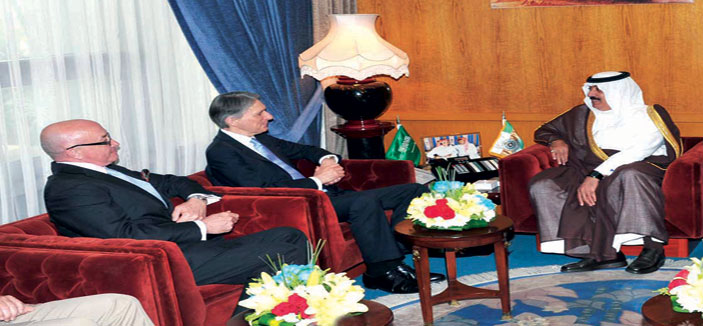 استقبل صاحب السمو الملكي الأمير متعب بن عبدالله بن عبدالعزيز وزير الحرس الوطني، في مكتب سموه بالوزارة أمس معالي وزير الدفاع البريطاني فيليب هاموند والوفد المرافق له الذي يزور المملكة حالياً. وتم خلال اللقاء استعراض الموضوعات ذات الاهتمام المشترك بين البلدين، وسبل تعزيز العلاقات التي تربط بين البلدين الصديقين لا سيما في الجانب العسكري والأمني وسبل تعزيزها بما يعكس مكانة العلاقات الوثيقة بين المملكة وبريطانيا في جميع المجالات. حضر الاستقبال معالي نائب وزير الحرس الوطني الأستاذ عبدالمحسن بن عبدالعزيز التويجري، فيما حضره من الجانب البريطاني السفير البريطاني لدى المملكة جون جينكنز وكبير مستشاري الدفاع لشؤون الشرق الأوسط الفريق سيمون مايول ، والملحق العسكري البريطاني في المملكة العميد اليسيدير وايلد.