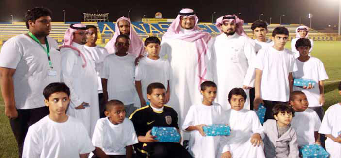 بعد ذلك أقيم حفل مرطبات قام الأمير تركي مع الأيتام بتقطيع «كعكة الدوري» ثم أخذ الأمير ولاعبو النصر الصور التذكارية مع الأيتام، وقد عبر سمو الأمير فيصل بن تركي عن شكره وتقديره لنادي المسؤولية الاجتماعية بجامعة الملك سعود الذي نظم هذه الزيارة، كما ثمن قيام مؤسسة البريد السعودي برعاية المناسبة، مؤكداً أن النصر يفتح أبوابه لهؤلاء الأطفال خاصة وأنهم جيل المستقبل.