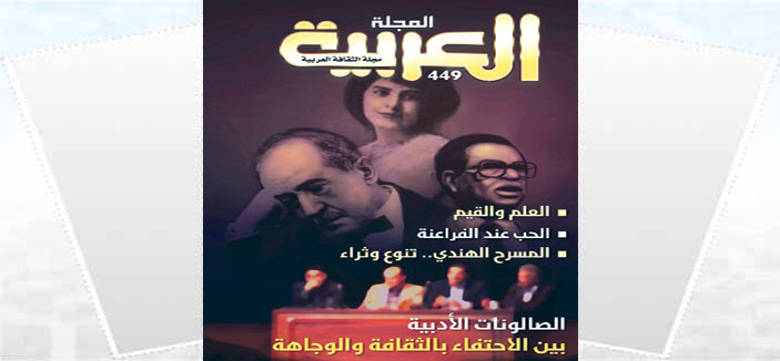 يستقبل قراء المجلة العربية عددها الجديد (449) عبر نافذة (الصالونات الأدبية .. بين الاحتفاء بالثقافة والوجاهة) التي تصدرت قضية العدد بمشاركات عربية منوعة شملت كل من السعودية ومصر والمغرب واليمن وسوريا والأردن والجزائر وعمان..