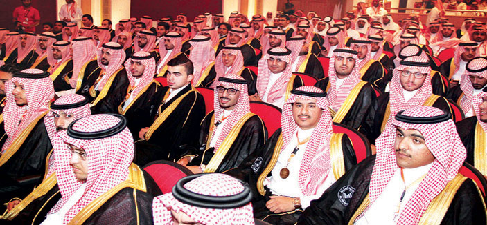 وقال سموه: إن مصدر السعادة هذا اليوم للطالب المتخرج ولوالديه وكذلك الوطن سعيد بتخرج هؤلاء الطلبة لخدمة وطنهم في كافة المجالات، وأشاد سموه بهذه المستويات الجيدة والعينات الممتازة من الطلبة، وكذلك النتائج من الطلبة من خلال ما أبلغني به مدير الجامعة وأعضاء هيئة التدريس وكذلك النتائج التي نفخر بها نحن أبناء المملكة.