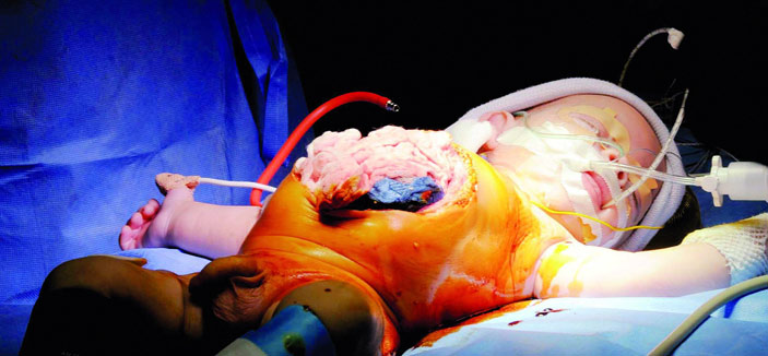 وبيّن الدكتور مناف العزاوي والدكتور ناصر الهديب استشاريي جراحة التجميل أن هذه المرحلة لم يتم الاستعانة بأي جلد صناعي وأن عملية ترميم القفص الصدري وإغلاق التجويف تم بصورة طبيعية.
