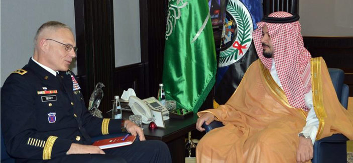 استقبل صاحب السمو الملكي الأمير سلمان بن سلطان بن عبدالعزيز نائب وزير الدفاع بمكتب سموه بالوزارة أمس قائد الجيش الأمريكي بالقيادة المركزية الفريق جيمس تيري والوفد المرافق له.