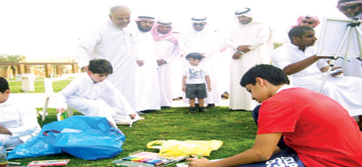 وفي البداية قام بجولة على الطلاب ومعلميهم المنتشرين في أنحاء الحديقة، واطلع على أعمالهم ورسوماتهم التي قاموا برسمها داخل الحديقة، واستمع إلى شرح منهم ومن معلميهم عن الأعمال. ويقام المرسم برعاية المدارس السعودية. وأوضح رئيس النشاط الفني بالإدارة الأستاذ سليمان بن عبدالمحسن الرويشد أن الهدف من المرسم تشجيع الطلاب على التفكير في بديع صنع الله من خلال المشاهدة الواعية لبديع صنع الله في مختلف الكائنات، وفي النواحي الجمالية في موروث هذه البلاد ومكتسباتنا الحضارية التي تحققت في المملكة وما وصلت إليها من تقدم، والحث على المحافظة عليها وتنمية الإدراك الواعي لما نراه ونلمسه في بيئتنا المحلية، وتنمية الرؤية الفنية ودقة ملاحظة الطلاب على الابتكار وتنميته لدى الطلاب، وإبراز قدرات أبنائنا وإكسابهم الثقة بالنفس. كما يهدف إلى إتاحة الفرصة للطلاب الموهوبين لممارسة الرسم من البيئة مباشرة بعد تهيئة المناخ الملائم، ومن خلال حرية أكبر. وأضاف بأنه يمكن للمعلم تدريب الطلبة المرشحين في المدرسة قبل الموعد بوقت كافٍ، مع الاهتمام بتدريبهم على دقة الملاحظة والتذوق الجمالي وحسن اختيار الموضوع المراد التعبير عنه في موقع جغرافي واحد، باختيار لقطات عدة من زوايا مختلفة، تكوّن في مجملها وحدة ولوحة فنية مترابطة متجانسة جميلة.