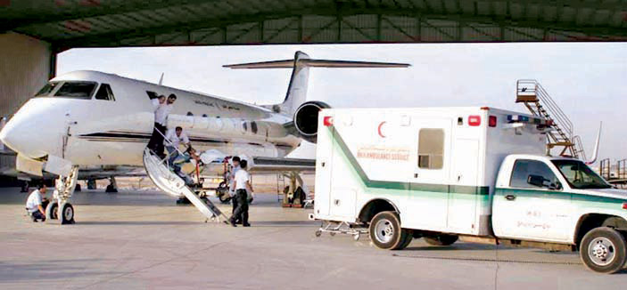 تجدر الإشارة أن الإخلاء الطبي الجوي بالخدمات الطبية للقوات المسلحة والذي أنشئ قبل ما يقارب 35 عاماً نقل خلالها أكثر من 35 ألف حالة، ومن خلال ما تم توفيره من أسطول للطائرات المتخصصة الطبية المتطورة النفاثة منها والعمودية ومن طواقم طبية وفنية متخصصة بأسطول قارب الثلاثين طائرة تقدم خدماتها داخل المملكة وخارجها على مدار الساعة انطلاقاً من توجيهات ولاة الأمر في تقديم أرقى الخدمات الصحية بمختلف سبلها.