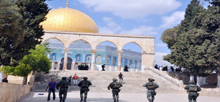- اقتحمت قوات من شرطة الاحتلال الإسرائيلية الخاصة صباح أمس الأحد المسجد الأقصى المبارك، عبر بابي المغاربة والسلسلة، وهاجمت المصلين بالقنابل الصوتية والأعيرة المعدنية.. وبحسب مصادر الجزيرة في القدس «أُصيب حارس المسجد الأقصى المبارك أمجد العلمي»، بقنبلة غاز في وجهه تم نقله على أثرها لعيادة الأقصى لتلقي العلاج، كما أصيب 5 فلسطينيين بحالات اختناق بعد رشهم بغاز الفلفل .. في حين اعتقلت قوات الاحتلال شاباً فلسطينياً، خلال اقتحامها للمسجد الأقصى ومحاولتها إخلائه من المصلين وفرض حصار عسكري مشدد على مُصلين في الجامع القبلي المسقوف ... الجزيرة