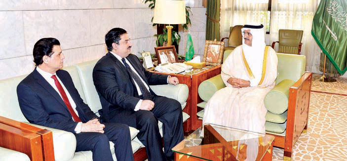 كما استقبل صاحب السمو الملكي الأمير خالد بن بندر بن عبد العزيز أمير منطقة الرياض في مكتبه بقصر الحكم امس معالي وزير التجارة الباكستاني خورام دستقير خان والوفد المرافق له.
