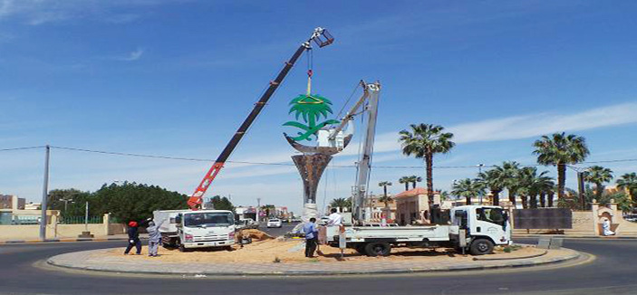 شرعت بلدية محافظة طبرجل بالعمل على إنشاء مجسمات جمالية وأشكال هندسية لإضفاء الطابع الجمالي لعدد من المواقع في المحافظة.