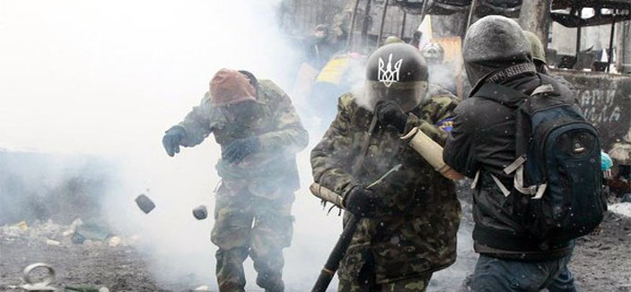 وحملت موسكو مسؤولية مقتل من وصفتهم بـ«المدنيين الأبرياء» لما يسمى الحزب اليميني المتشدد الذي قاد الاحتجاجات التي أدت إلى الإطاحة بالرئيس الأوكراني الموالي للكرملين فيكتور يانوكوفيتش في شباط-فبراير الماضي.