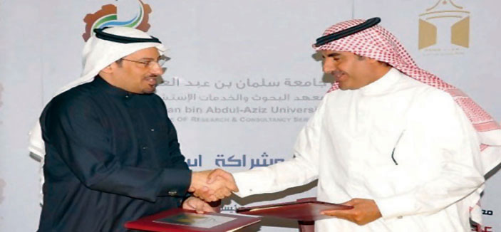 تم توقيع عدد من اتفاقات التعاون بين جامعة سلمان بن عبد العزيز ممثَّلة في المعهد من منطلق الوظائف الرئيسة للمنطقة الجغرافية التي تغطيها الجامعة بخدماته والجهات التالية: