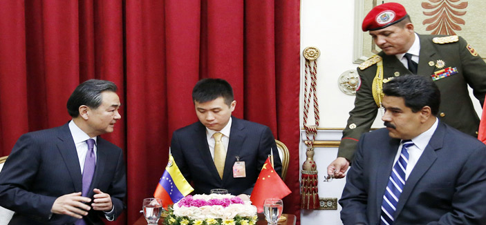 - رئيس فينزويلا نيكولاس مادورو خلال استقباله وزير خارجية الصين في العاصمة كراكاس ... رويترز